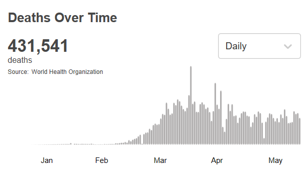 根据世卫组织最新实时统计数据,截至欧洲中部夏令时间6月15日19时35分(北京时间6月16日1时35分),全球确诊新冠肺炎7823289例,死亡431541例。